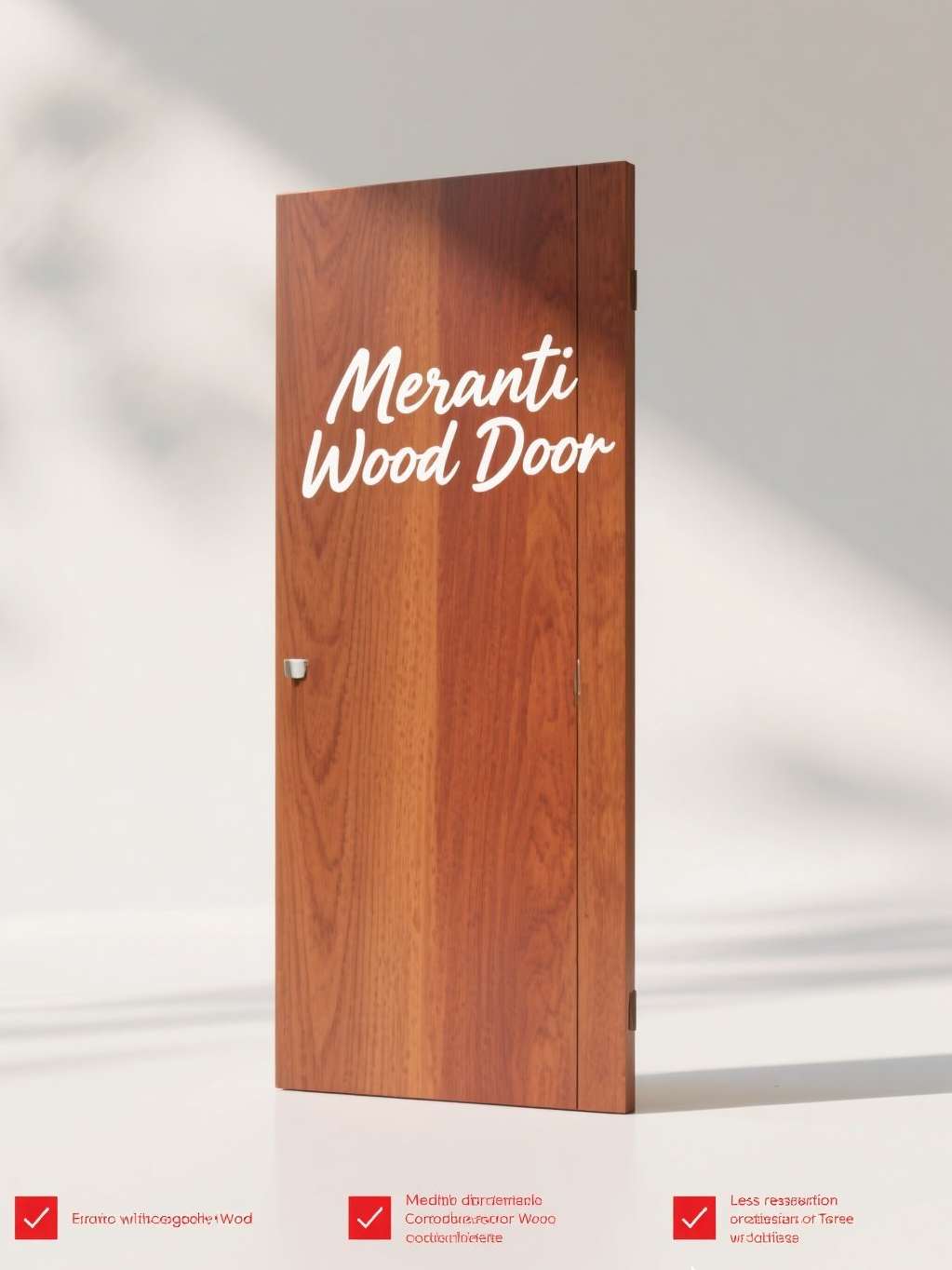 Kayu mahoni memiliki serat halus, warna coklat kemerahan yang elegan, serta struktur stabil yang tidak mudah melengkung, sehingga menghasilkan pintu yang rapi dan tahan lama. Selain mudah difinishing dan dibentuk untuk berbagai desain, mahoni juga cukup tahan rayap dan menawarkan nilai ekonomis yang seimbang untuk penggunaan jangka panjang.