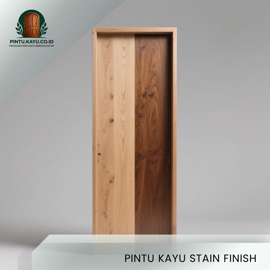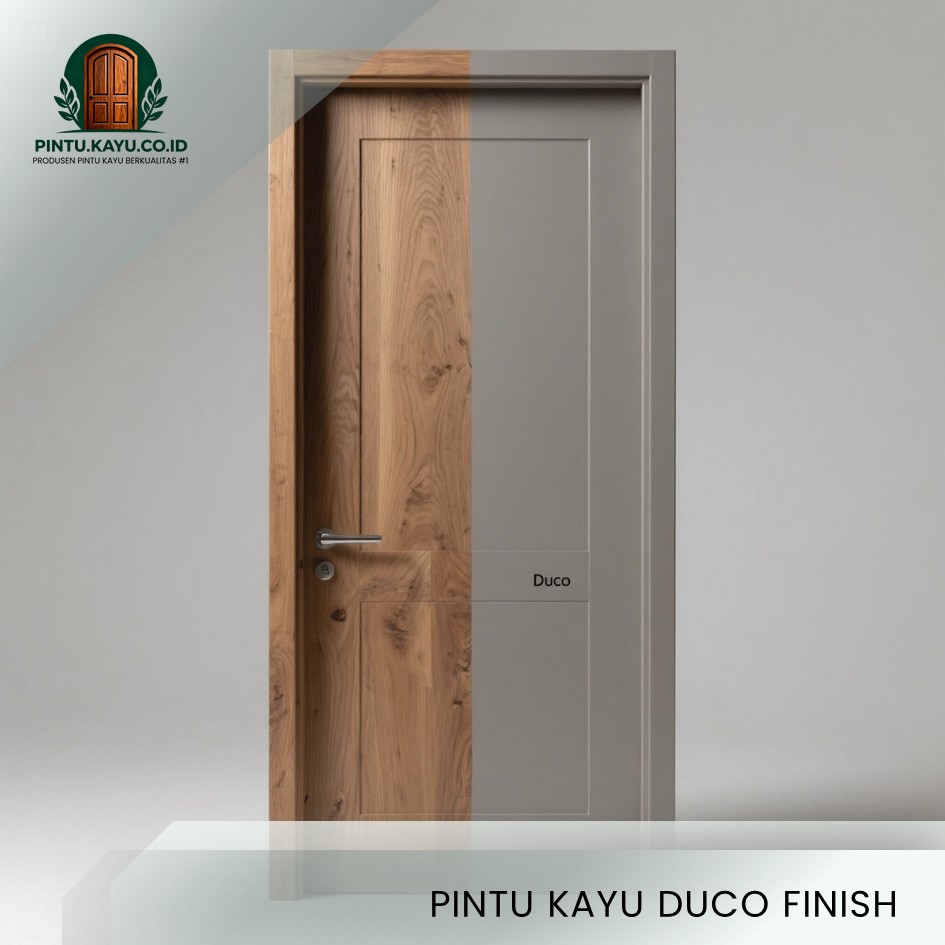 Duco finish menggunakan cat berbasis lacquer yang menghasilkan warna solid, rata, dan bersih. Finishing ini sangat populer untuk desain pintu minimalis dan modern, terutama bagi Anda yang menginginkan tampilan pintu mahoni dengan warna tertentu tanpa terlihat serat kayu.