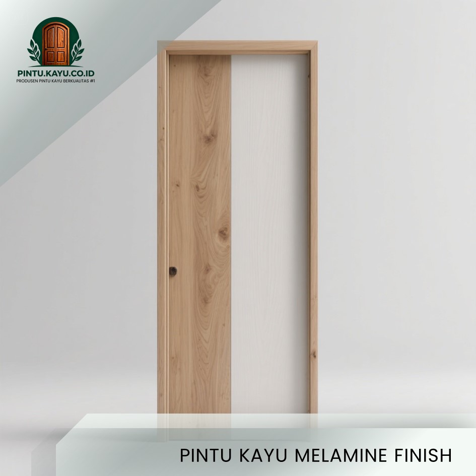 Melamine finish memberikan permukaan pintu yang halus, licin, dan rapi. Lapisan ini cukup kuat untuk penggunaan sehari-hari, mudah dibersihkan, dan sering dipilih untuk pintu interior dengan tampilan modern dan praktis.